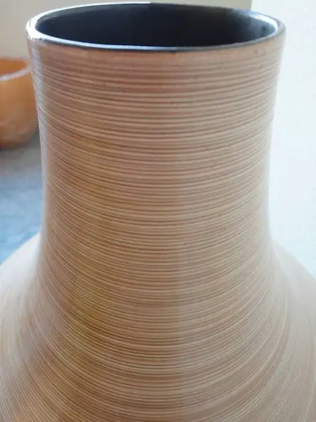 Bodenvase aus Keramik, violett, Oberteil beige gerippt, traditionelle Handarbeit aus Vietnam, neu;