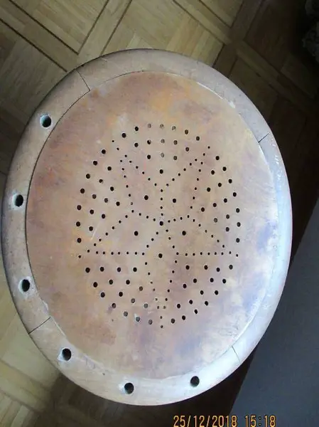 Mittelplatte dünnes holz mit Löcher, Lochmuster, Der Rand des Möbels hat auch Löcher, daher war es vielleicht einmal ein