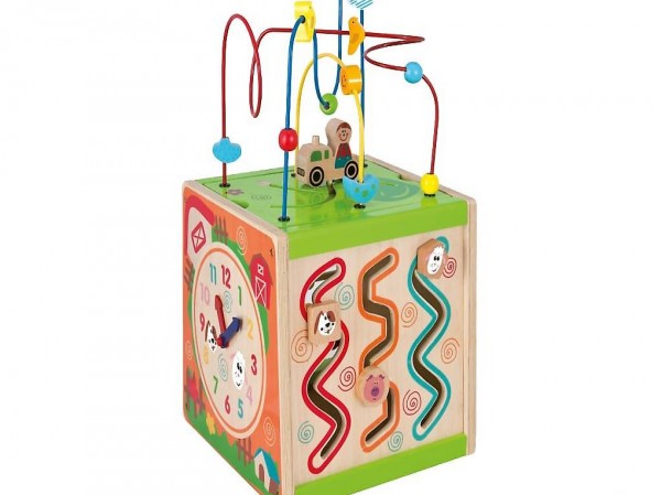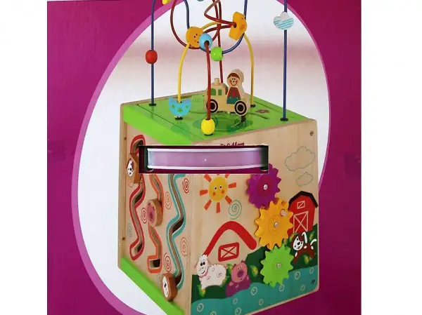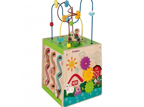 une variété d'options de jeu telles qu'un Motorikschleife, une horloge, un jeu de motricité, un cadre de comptage et un jeu rotatif dans lequel les engrenages tournent. Chaque partie du centre de jeu favorise la motricité et la coordination main-?il des enfants.