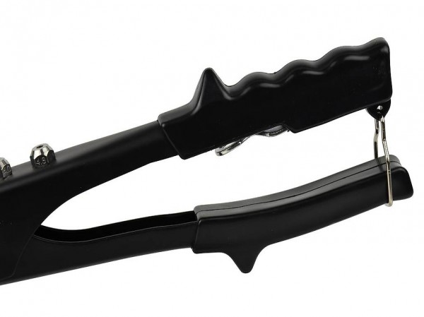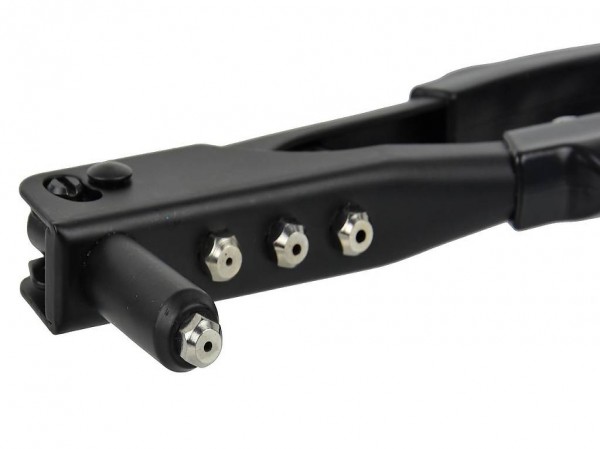 Handnietmaschine, die 4 verschiedene Nietgrössen verwenden kann. Befestigt Bleche und schwere Gewebe in Rohrleitungen,