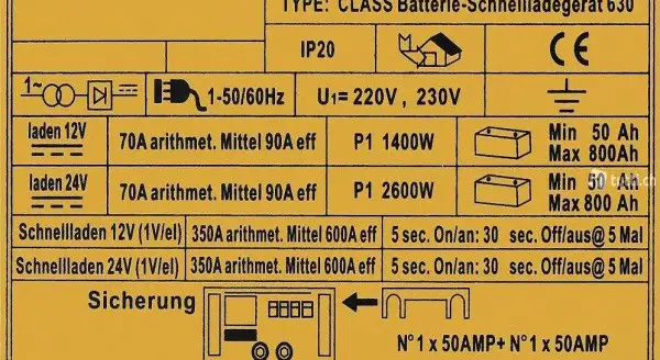 Batterieladegerät ist ein professionelles Startladegerät zum Laden und Schnellladen von 12V und 24V Blei-Säure-Batterien oder Blei-Vlies-Batterien.