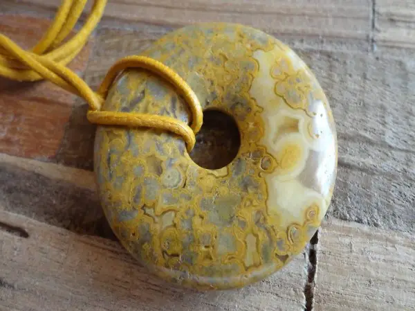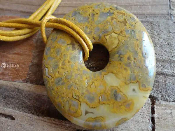 Pi-Scheibe Versteinerte-Koralle an Ziegenlederkordel