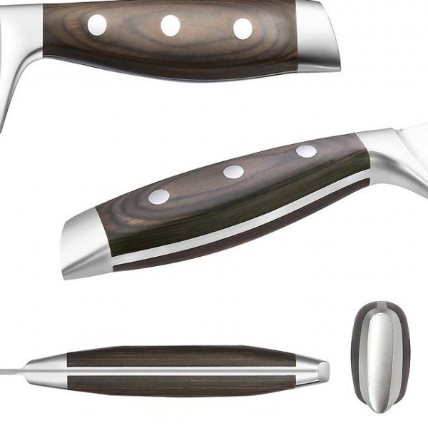 BEQUEM ZU HALTEN: Der ergonomische Griff aus PAKKA-Holz ist bequem, robust und langlebig. Sie werden sich auch dann nicht müde fühlen, wenn Sie das Messer lange halten