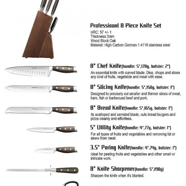 Holz, Extra Scharf deutschem Edelstahl 1.4116 Kochmesser Set mit Holzblock, 8-teiliges