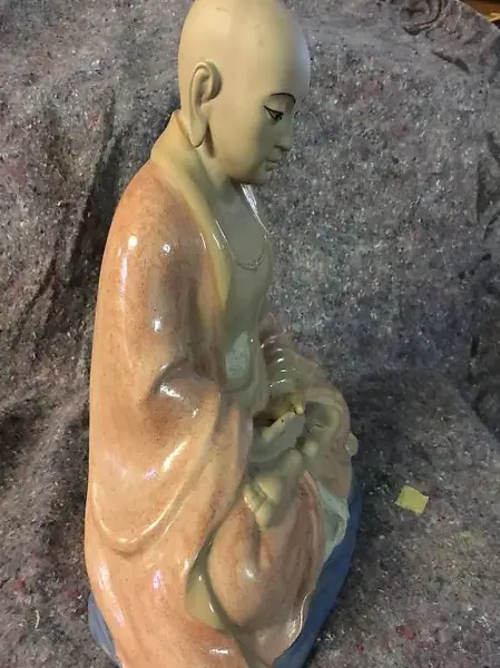 Sehr schöner Buddha aus Hartporzellan? Loch für Räucherstäbchen vorhanden Sehr schöne Ausführung. 37 cm hoch, 32 cm breit und 22 cm tief. Sollte abgeholt werden.