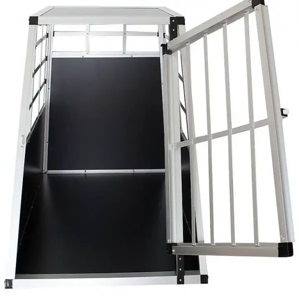 Hundetransportbox aus rostfreiem Aluminium stellt eine sichere und stabile Transportmöglichkeit für Ihren geliebten