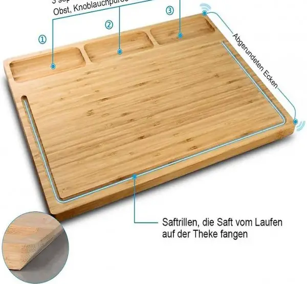 BIO-BAMBUS, BPA-FREI: Dieses Küchenschneidebrett besteht aus 100% natürlichem Bambus, BPA-frei. Die Platte ist gut poliert mit einer glatten Oberfläche