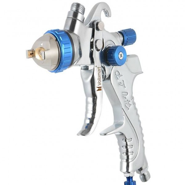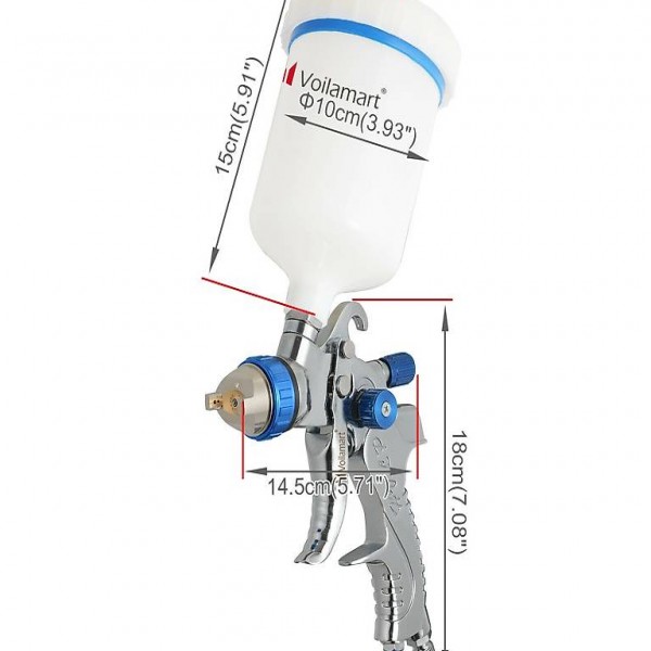 Unsere professionelle, mit 3 Flüssigkeitsspitzen ausgerüstete HVLP-Spritzpistole (High Volume Low Pressure) für Schwerkraftzufuhr ist wirtschaftlich und dennoch langlebig. Es liefert einen niedrigen Druck durch die Luftkappe, wodurch das Sprühen weicher, leicht gesteuert und weniger übersprüht wird.