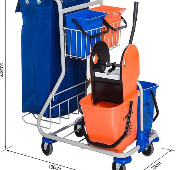 Reinigungswagen: Ausgestattet mit 4 Eimern, Rollen, Mopp-