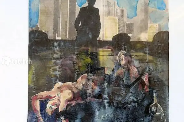 Mischtechnik auf Karton. Grosse 19x20 cm. Mit dem Rahmen 28x35 cm. Verglast.