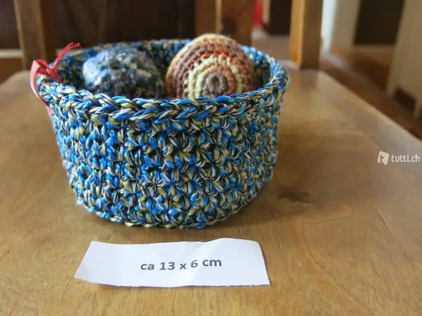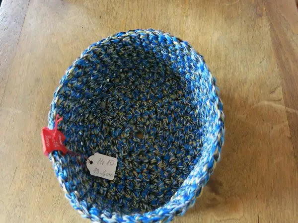 rundes Körbchen gehäkelt aus Recyclingschnur mit Nadel Nr. 7