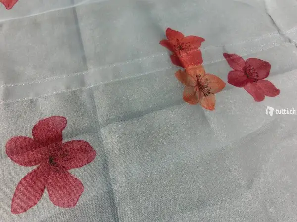Sie sind in einem weiss mit rötlichen-orangen Blumen versehen