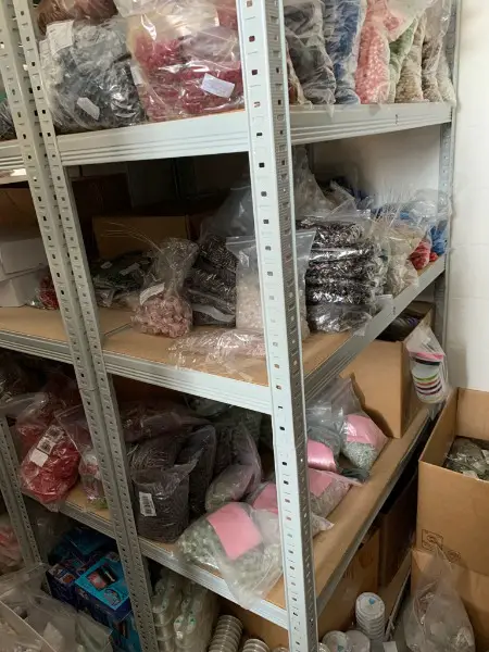Zum Beispiel: Schmuckdraht, Tibet Silber (Anhänger usw.) , Silber 925, Glasperlen, Karabinerverschlüsse, Holzperlen, Magnetverschlüsse, Organza Schmuckbeutel, Stardust Perlen, Riesin Perlen, Acryl Perlen, Ohrstecker, Ohrringe, Spiralperlen, Edelstahlohrringe, Kinderuhren, Geschenkbänder (sehr viele) , diverse Edelstein Perlen, diverse Ketten, Drahtperlen, Frosted Perlen, Lava Perlen, Goldglasperlen, Karabiner, Elastic Cord, Baumwollkordel, Edelstahlringe, diverse Millefiori, Quetschperlen, Look, diverse Kinderholzperlen, Perlenketten, diverse Armbänder, Stretch Armbänder, verschiedene Ringboxen usw. inkl. Inventar (diverse Gestelle) .