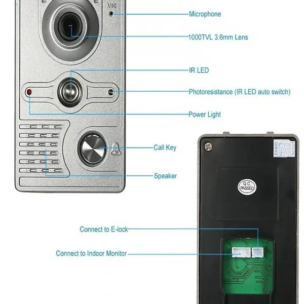 Video-Türsprechanlage mit IR-Cut regensicherer Aussenkamera