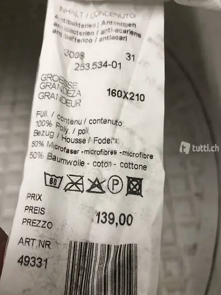 50%Baumwolle50%Mocrofaser 2/Mal Grosse 210/160 zusammen Für nur Fr120