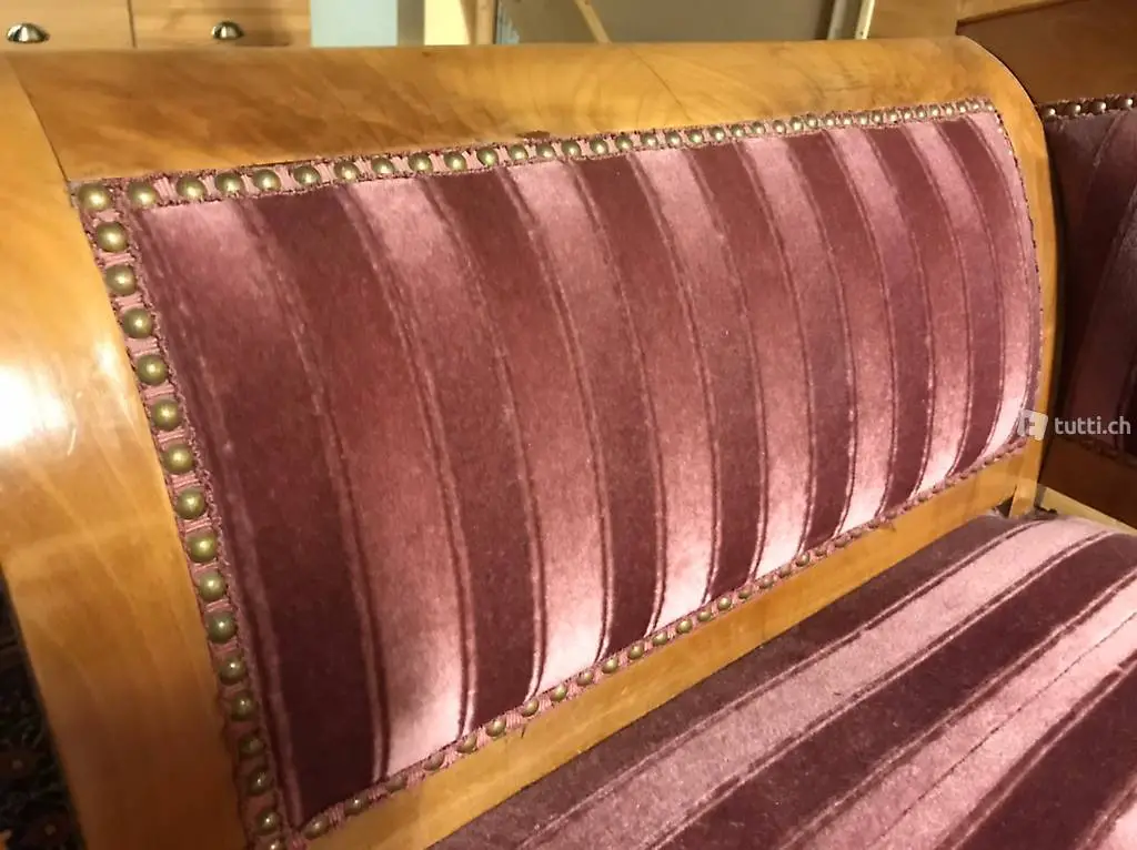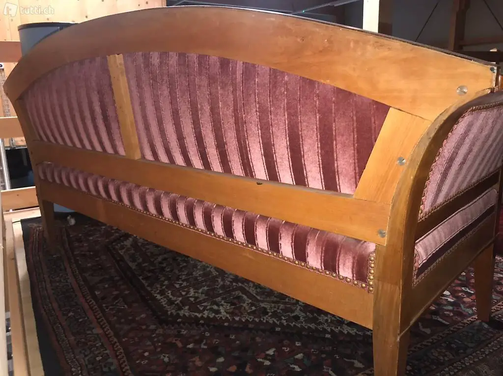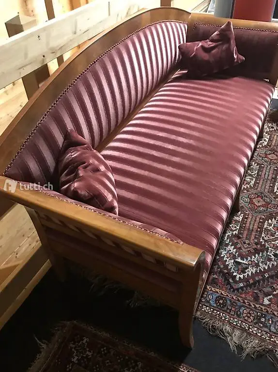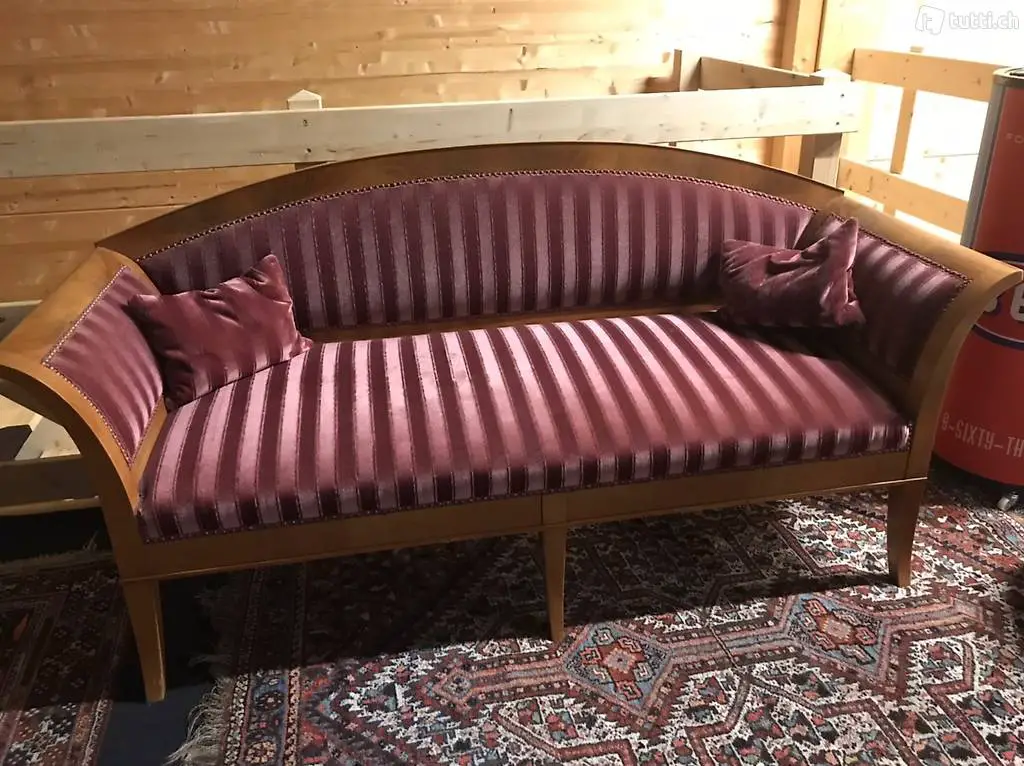 Sehr schönes, restauriertes Biedermeiersofa mit stilgerechtem Bezug und 2