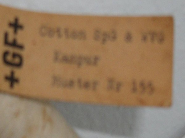 Etikett: "+GF+", Cotton SpG&WVG Kanpur, Muster Nr. 155