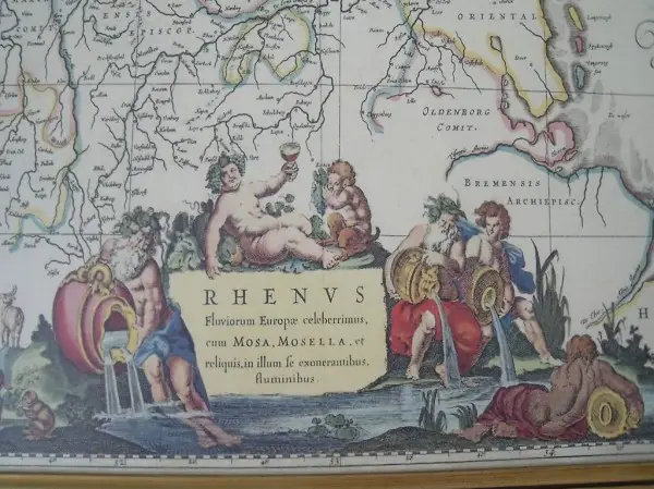 Faksimile-Rhenus(Rhein)-Karte mit Rahmen