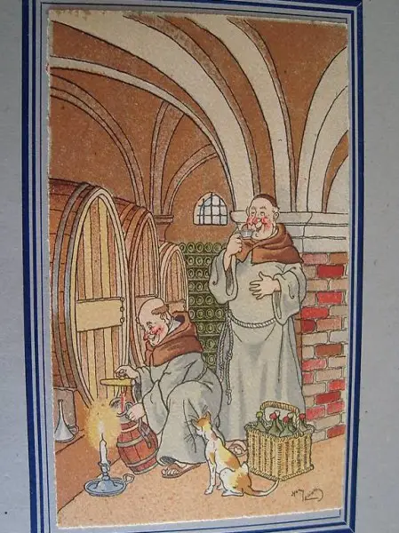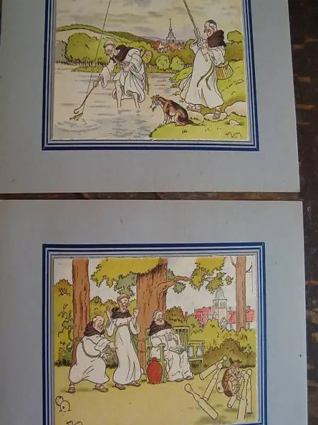 Sechs Radierungen Drucke in Form von Postkarten, Harry Eliott unterzeichnet. Dimensionen: 11x15 cm. Themen: Szenen von Mönchen und Musikanten-Bischöfen. Verleger: M. Barré - J. Dayez, Paris; Datierung: 50er Jahre.