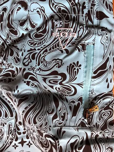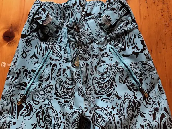 Tasche hinten mit Reissverschluss. 1 Tasche am unteren Beinende mit Reissverschluss. Sehr feines Material, sehr angenehm zum tragen, sehr leicht.