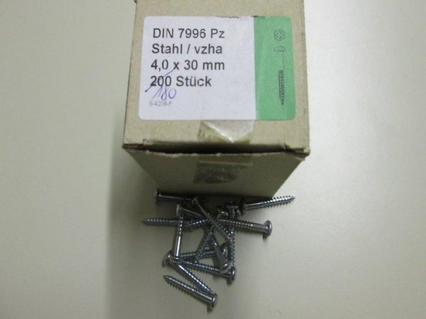 ?180 Stück Holzschraube 4,0x30 mm, DN 7996 Pz, stahl/vzha (1 Packung)