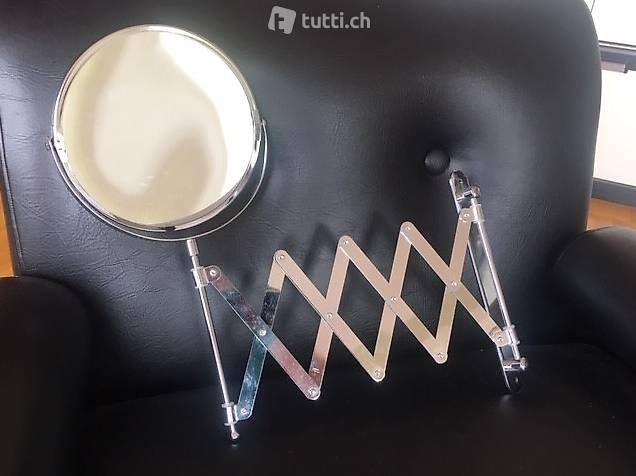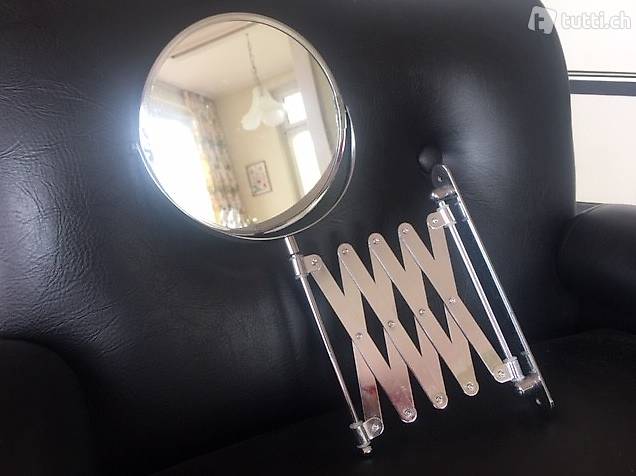 Nicht gebrauchter Kosmetikspiegel (in Originalverpackung) abzugeben zur Montage an Wand. Enthält zwei Spiegel zum Drehen - ein Spiegel mit Vergrösserung; 46 cm tief bei maximaler Ausdehnung, 34 cm hoch, 2.5 cm breit. Abholung bei mir zuhause oder Zusendung gegen Porto.