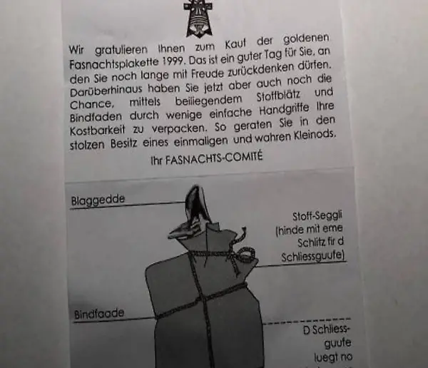 Inklusive Anleitung und Stoffblätz zum verpacken der goldenen Blaggedde