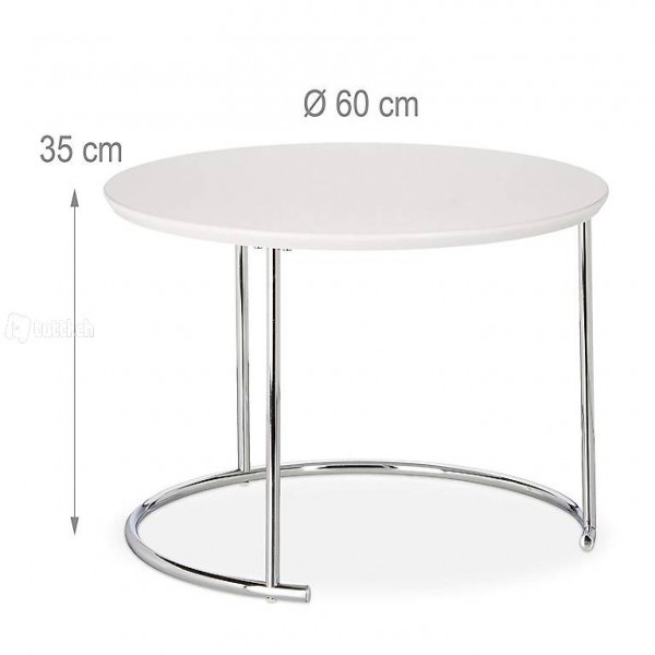 verchromt Beistelltisch 2er Set, Holzdekor, Weiss, 60x60 x 35 cm