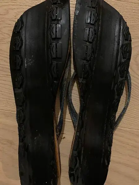 Die Zehenschuhe aus Naturmaterialen haben eine Sohle aus Pneus und sind deshalb sehr robust und nicht ablaufbar. Abholung oder Versand möglich zuzüglich 7.- Porto