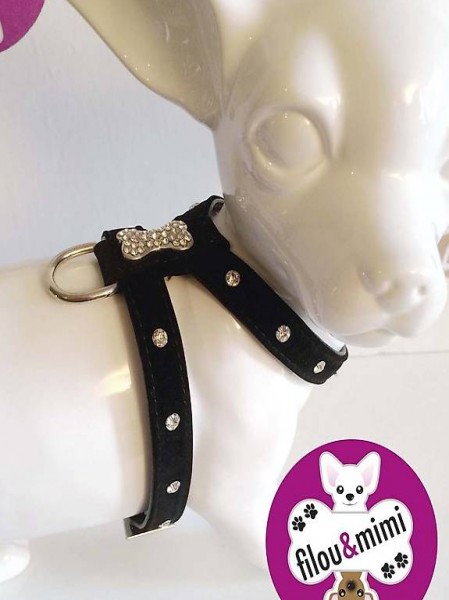 M+F Geschirr BLING-BONE für chihuahua schwarz, Gr.S