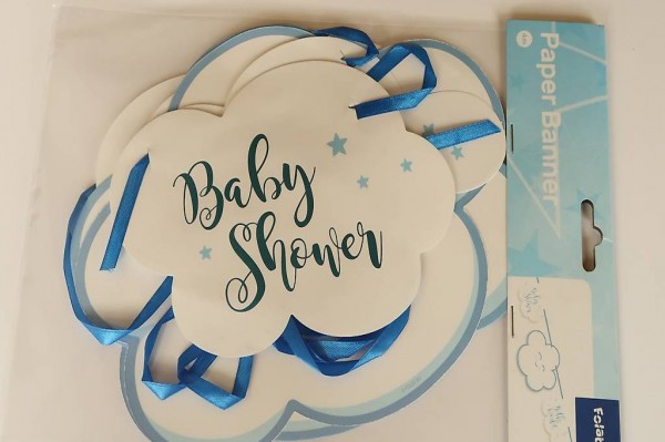 Babyshower Deko, 4 Meter Wolkengirlande aus starker Pappe mit schönem Satinband zum Befestigen