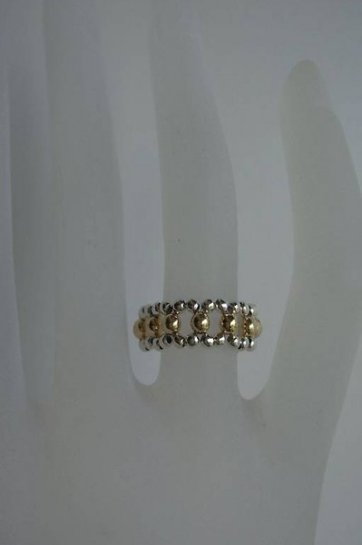 Tout en finesse, cette bague (51/52) est faite de perles en gold filled 14 carats 3mm entourées de perles en Argent 925 de 3mm. Pièce unique :