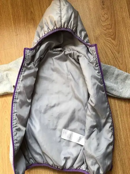 Die Jacke ist mit der Grösse 116 angeschrieben, ist aber eher klein geschnitten, so dass sie auch mit einer Grösse von 110 schon getragen werden kann.