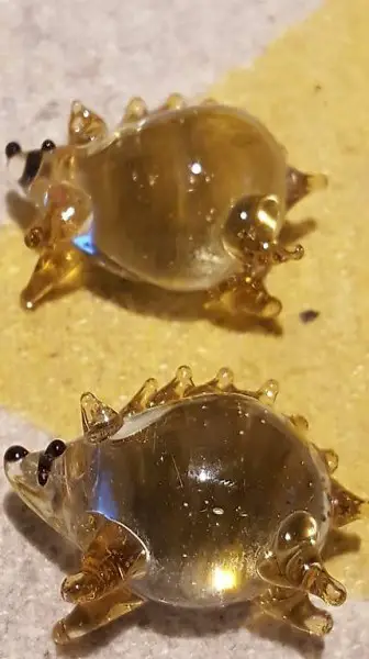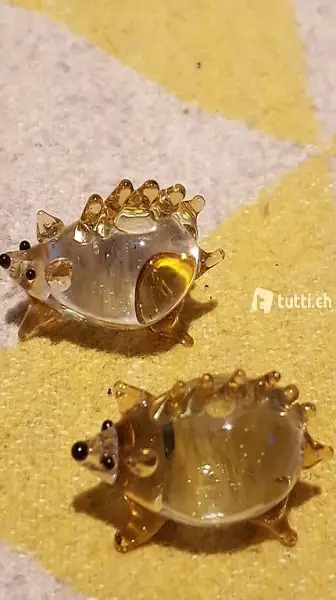 2 mundgeblasene Igel je 3.4cm Länge und 2.6cm Breite. Wie