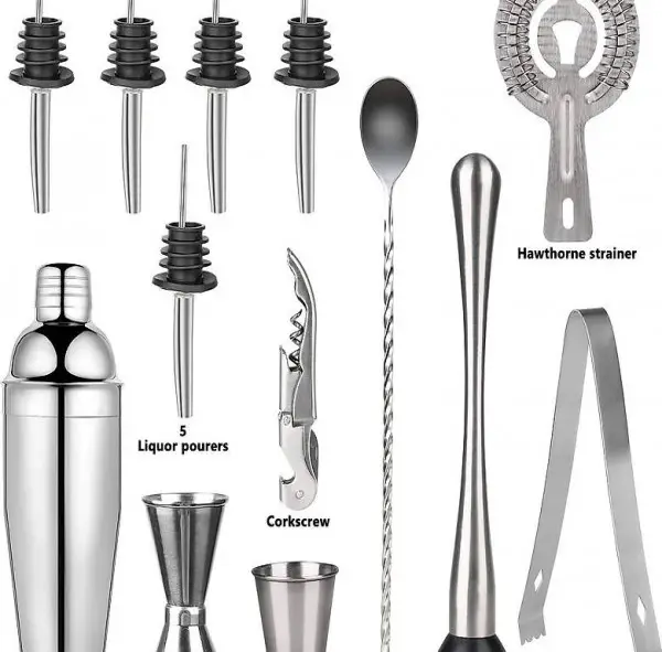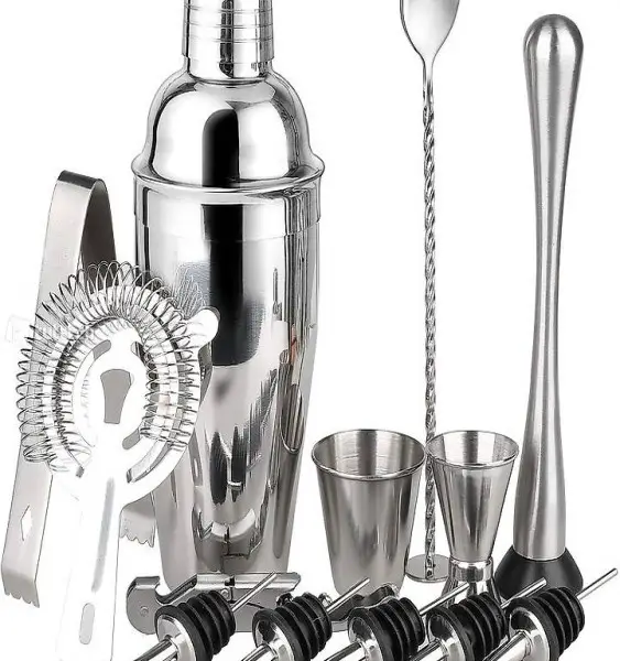 mit Bambus-Aufbewahrung, inkl. Cocktail-Shaker, Doppeljigger, Messbecher, Bar Stössel, Bar