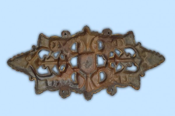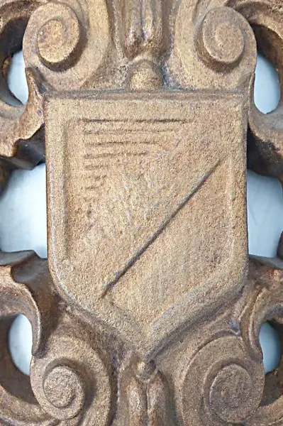 Das aus schwerem Eisenguss gefertigte und alte Schild macht sich sicher als eindrückliche Verzierung auf vielen Möbeln oder auf einer entsprechenden Wand eine gute Figur.