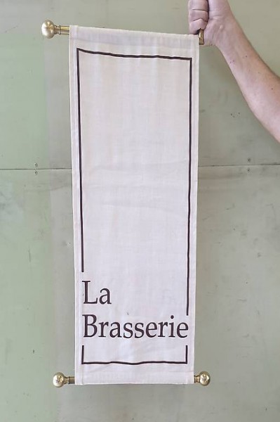 Werbefahne LE BRASSERIE | Stoff an Messingstange