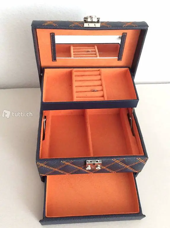 , abschliessbar, schwarz/ orange, in ausgezeichnetem Zustand, 21x16x14 cm. Kann verschickt werden (Porto und Verpackung Fr 9.-)