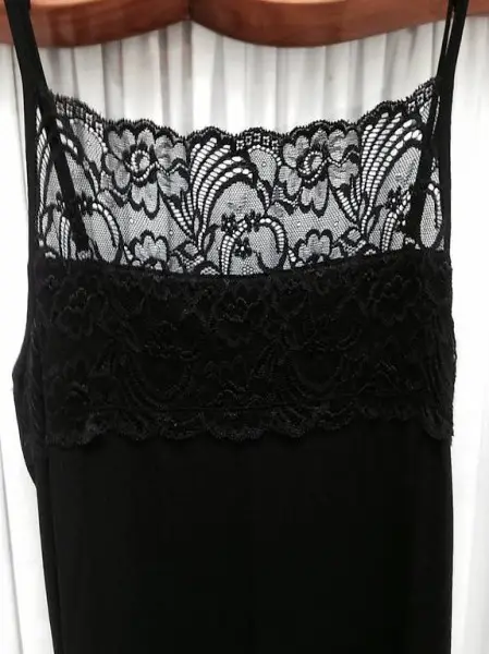 aus 95% Viscose, 5% Elastan, waschbar 30 Grad. Träger verstellbar.