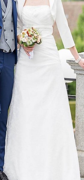Wunderschönes Hochzeitskleid Grösse 38/40, getragen am 05.05.2018 bei schönem und trockenem Wetter. Das Kleid wurde bereits professionell gereinigt. Ich bin 1.70 Meter gross und habe Schuhe mit 5 cm hohen Absätzen getragen.