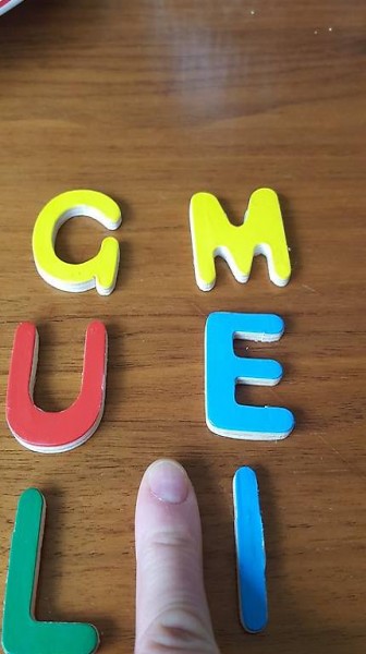 Schöne hölzerne, 3cm lange Holzbuchstaben M, I, G, U, E, L. Wir hatten das