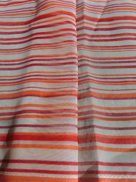 Sie sin in einem rot-weiss-orange gestreift