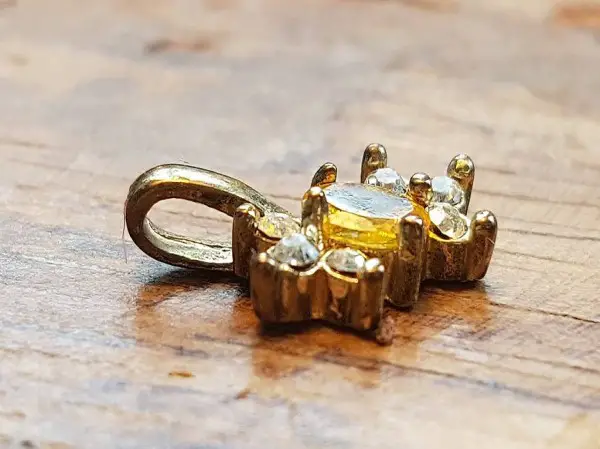 mit Imitationen von 6 Diamanten und 1 Citrin aus Metall, goldfarben.