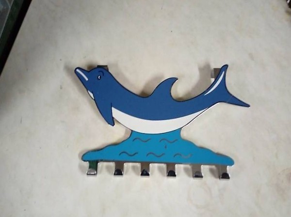 Ein älterer Metallkleiderhaken für die Türe mit Delfin Motiv