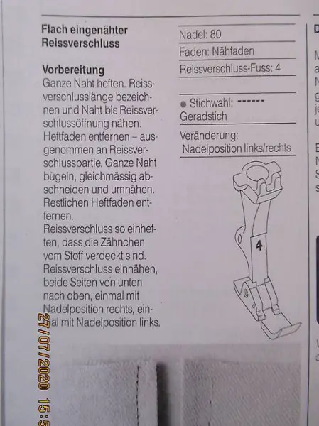 zum Einnähen von Reissverschlüssen, Nummer 4, auch zum