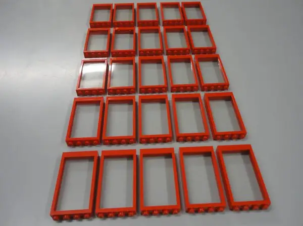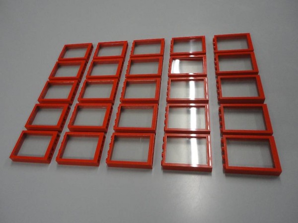 - 25 rote Fenster der Grösse 1x4x5 mit transparenter Scheibe.