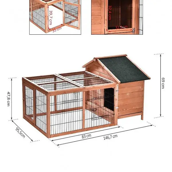 Masse des Laufstalls: L98 x B83 x H47,8 cm