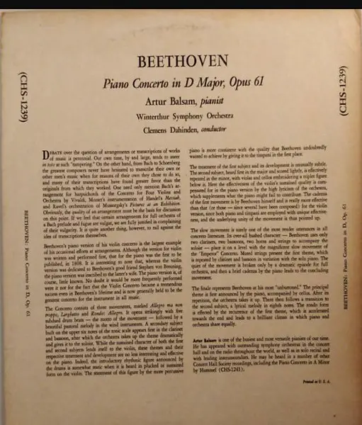 Piano Concerto In D Major / Opus 61 (LP, Mono)