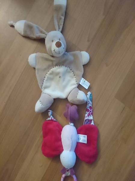 - blauer Schmetterling mit Rassel und verschiedenen "Flügelbilder"