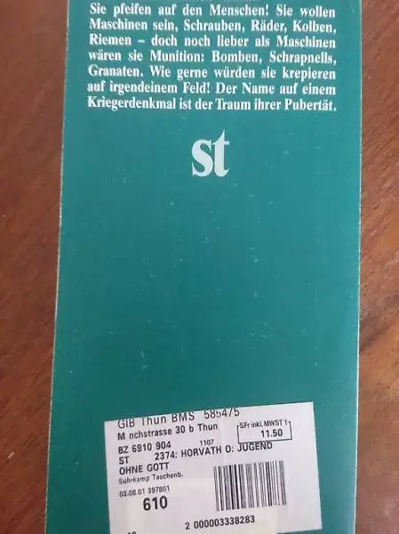 Horvath Jugend ohne Gott / suhrkamp taschenbuch